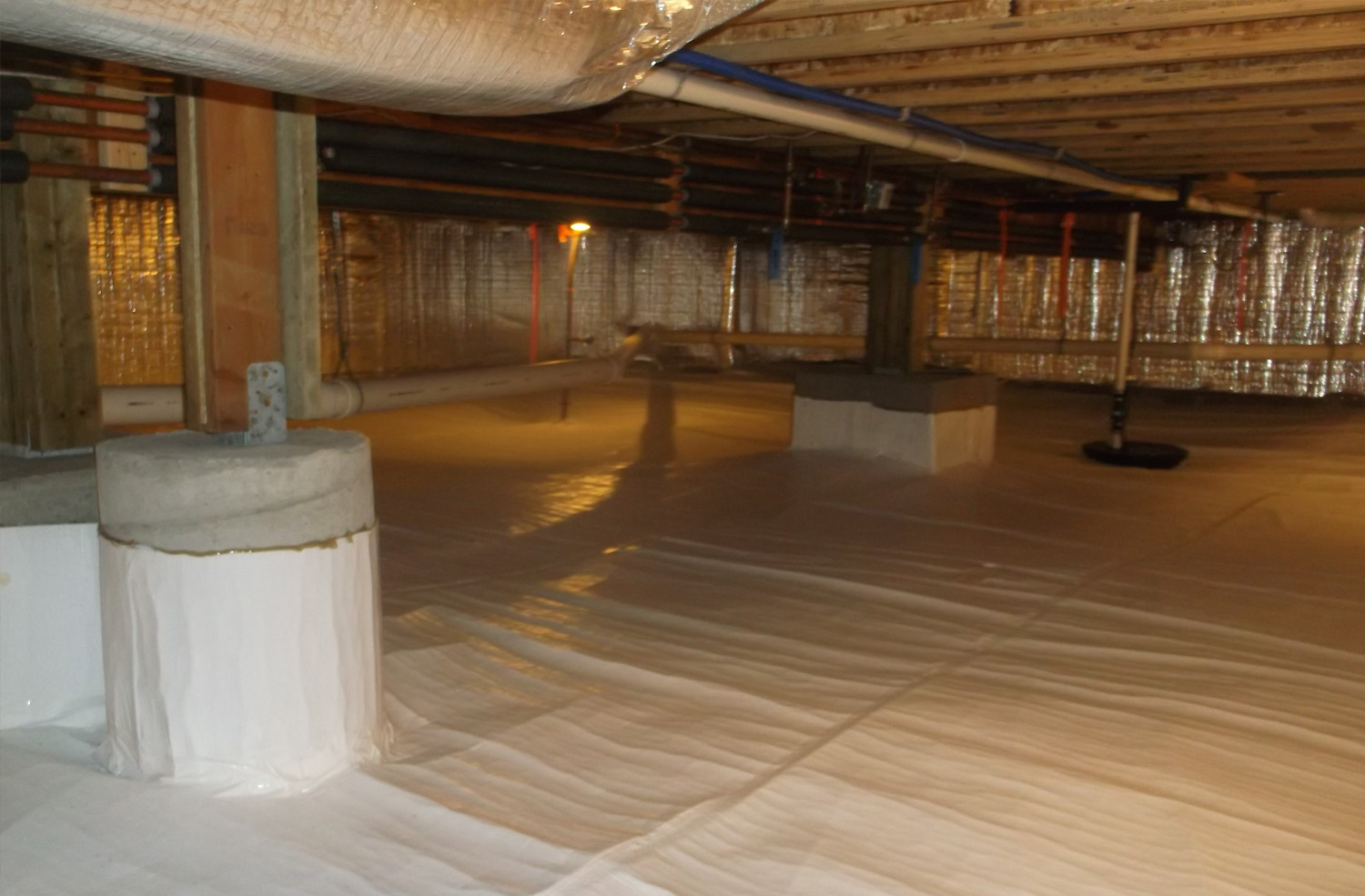 Unfortunately, an unfinished crawl space can also be quietly undermining the integrity of the home and life within it. The crawl space like many unfinished basements tends to be quite humid. The excessive moisture in a crawl space poses a number of threats to the home. It provides an environment for mold to thrive, mold that can eventually make its way up into the rest of the home. It can reduce the indoor air quality of the living areas above; the moisture can also attract wood-boring insects that destroy the wood sub-structure. The presence of insects may also draw rodents and other pests into the crawl space. Unfinished crawlspaces may cause moisture-related problems to the structure of the home and increase utility costs. Solving the crawl space moisture issue is the first priority in a crawl space finishing project.